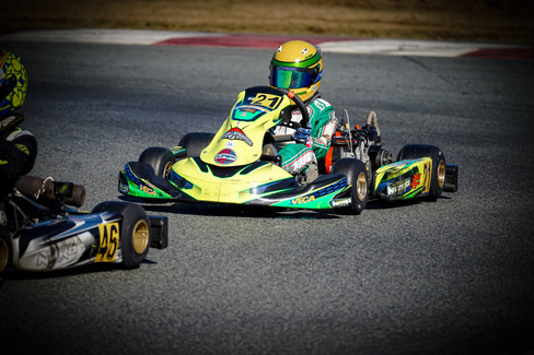 Sunday was race day #2 but in the KA100 Junior class, which again we wake up to 20-degrees outside, which made the track slick cold and just off. With the track being slick and with us not having the right tire pressure, I qualified 23rd out of 25. In prefinal #1, I worked my way up to 12th but still 7 tenths off the draft. In final #1, I got down as low as 9th but kept getting passed back and forth, which led me to finish the race in 10th. In prefinal #2, I had to start 23rd again (based on qualifying), but only made it up to 18th, my kart and I were just struggling the entire race. In final #2, I started 18th and within 7 laps I was already up to 10th. My kart felt great and was in the whole time. The 7 kart draft ahead of me was too far gone and was 4 tenths faster than me being alone, which led me to finish 10th. If I had a few more laps I could have been racing with the kids in the 7 kart train, with only being less than 2 seconds away from them.